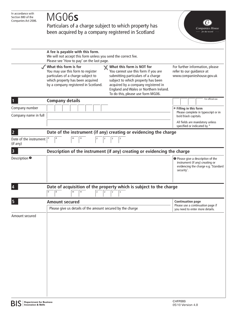 Companies Act 2006.MG06sParticulars of a charge subject to which property has