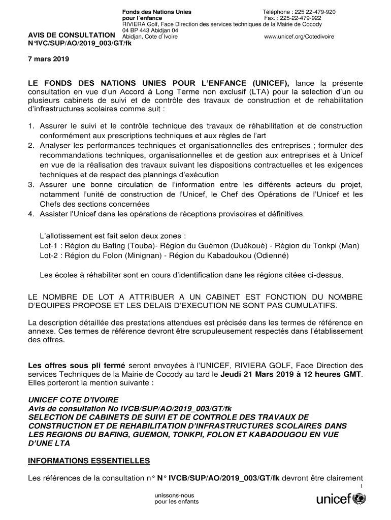 Finds DES Nations Units Tl phone : 225 22479920 pour enhance Fax. 22522479922 RIVIERA Golf, Face Direction DES services techniques DE la Masai de Cocody 04 BP 443 Abidjan 04 Abidjan, Cote d Voice