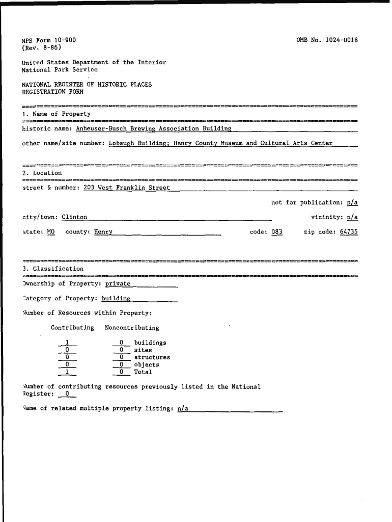 NFS Form 10900 (Rev.0 MB No.10240018886)United States Department of the Interior National Park Service NATIONAL REGISTER OF HISTORIC PLACES REGISTRATION FORM1. Name of Property historic name:Anheuser-Busch