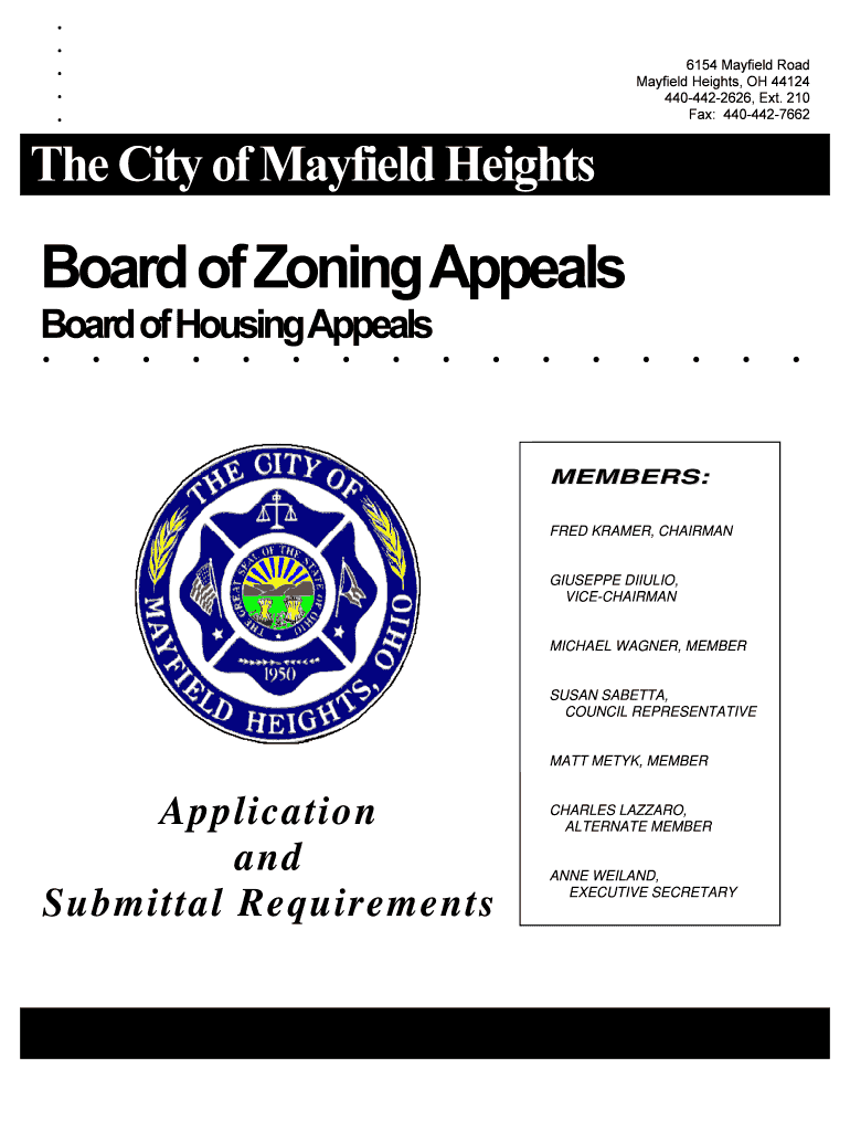 Fax: 4404427662The City of Mayfield HeightsBoard of Zoning Appeals