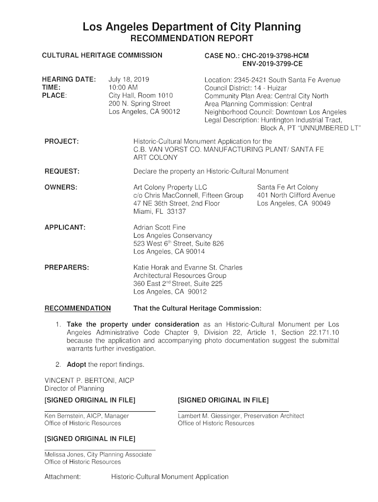 Los Angeles Department of City Planning RECOMMENDATION REPORT CULTURAL HERITAGE COMMISSION CASE NO.: CHC20193798HCM ENV20193799CEHEARING DATE: TIME: PLACE:Location: 23452421 South Santa Fe Avenue