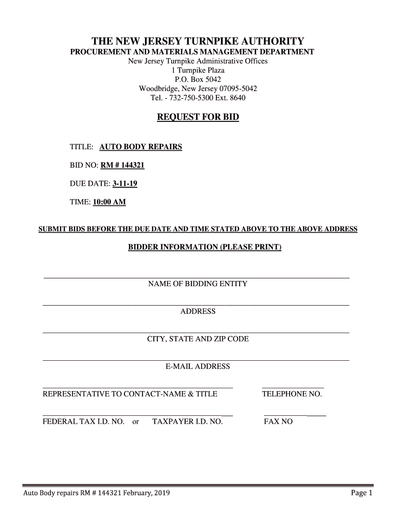THE NEW JERSEY TURNPIKE AUTHORITY PROCUREMENT AND MATERIALS MANAGEMENT DEPARTMENT New Jersey Turnpike Administrative Offices 1 Turnpike Plaza P.O. Box 5042 Woodbridge, New Jersey 070955042 Tel. 7327505300