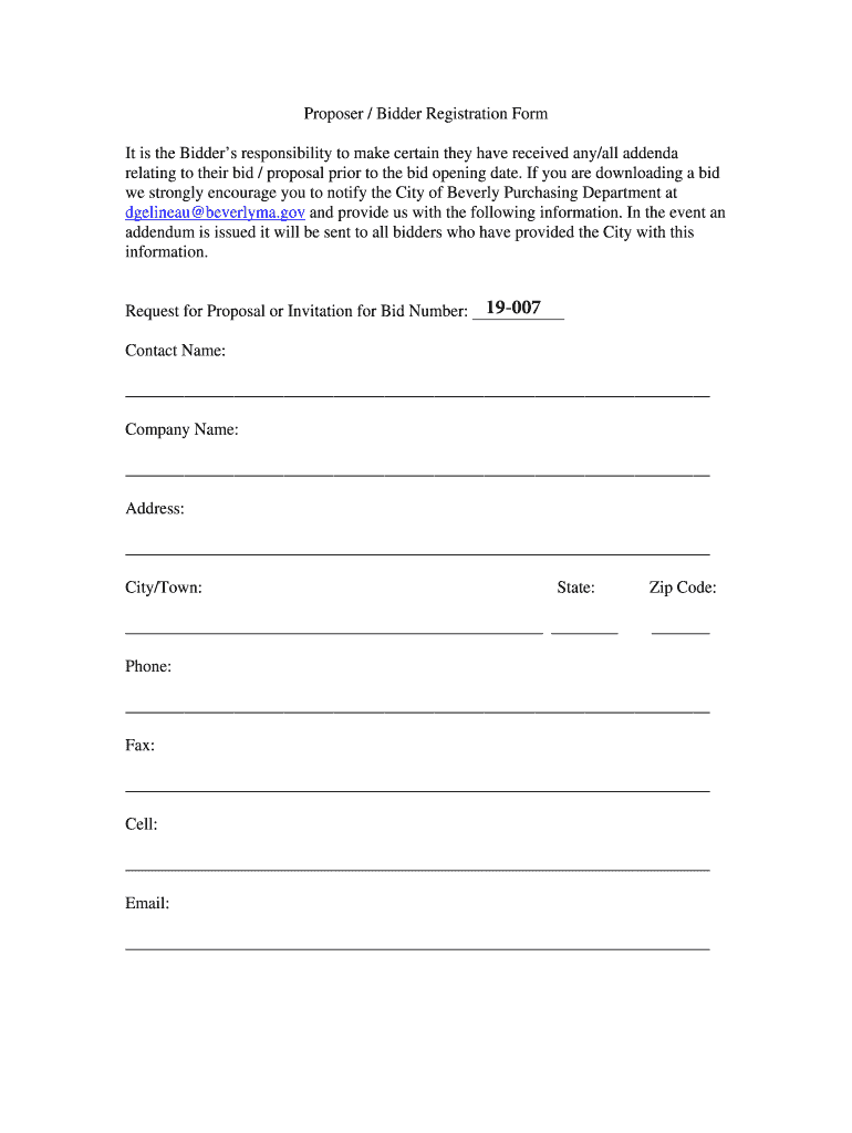 Proposer / Bidder Registration Form
