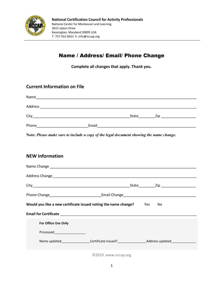 Get the free Name / Address/ Email/ Phone Change Current ... - nccap