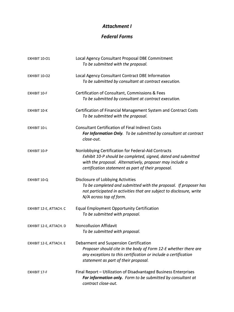 Attachment I Federal FormsEXHIBIT 10O1Local Agency Consultant Proposal BE Commitment To be submitted with the proposal. EXHIBIT 10O2Local Agency Consultant Contract BE Information To be submitted