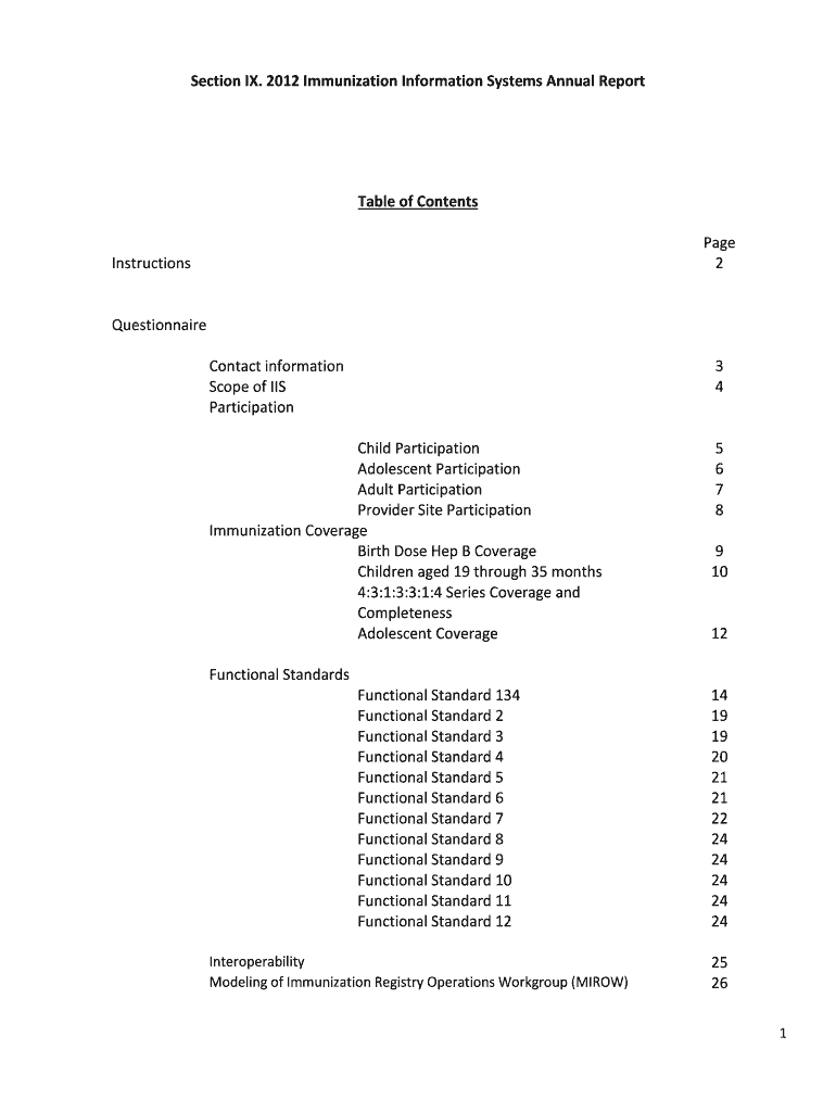 Section IX. 2012 Immunization Information Systems Annual Reportable of Contents