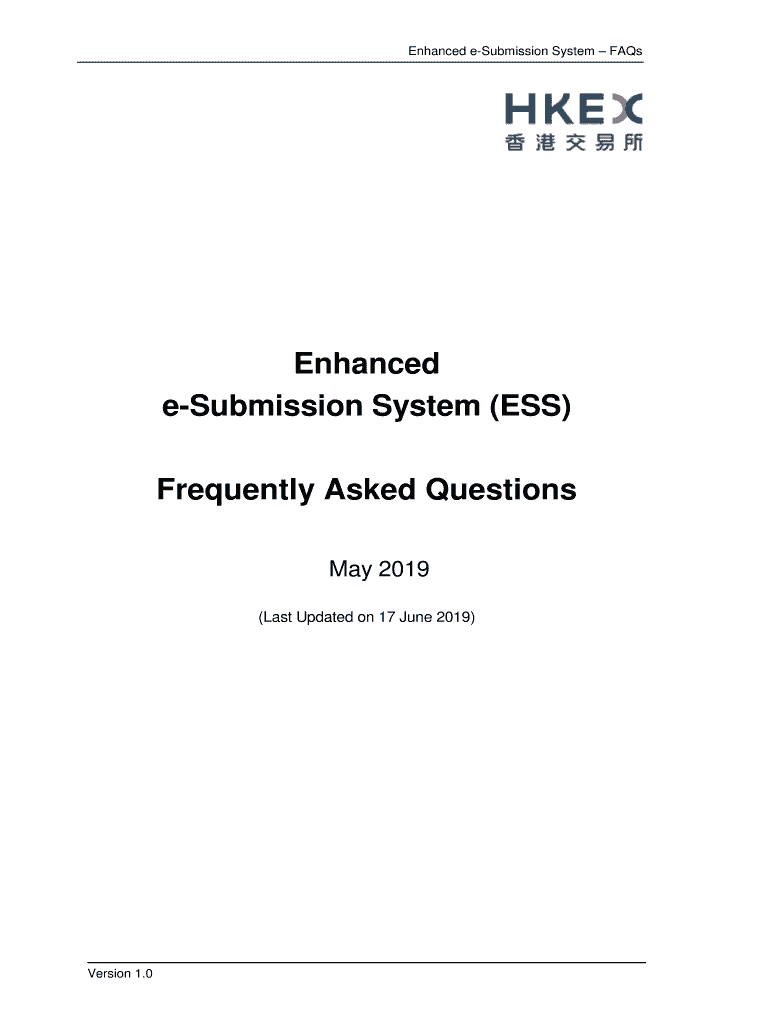 Enhanced submission System FAQsEnhanced submission System (ESS) Frequently Asked Questions May 2019 (Last Updated on 17 June 2019)Version 1.0Enhanced submission System Stable of Contents INTRODUCTION