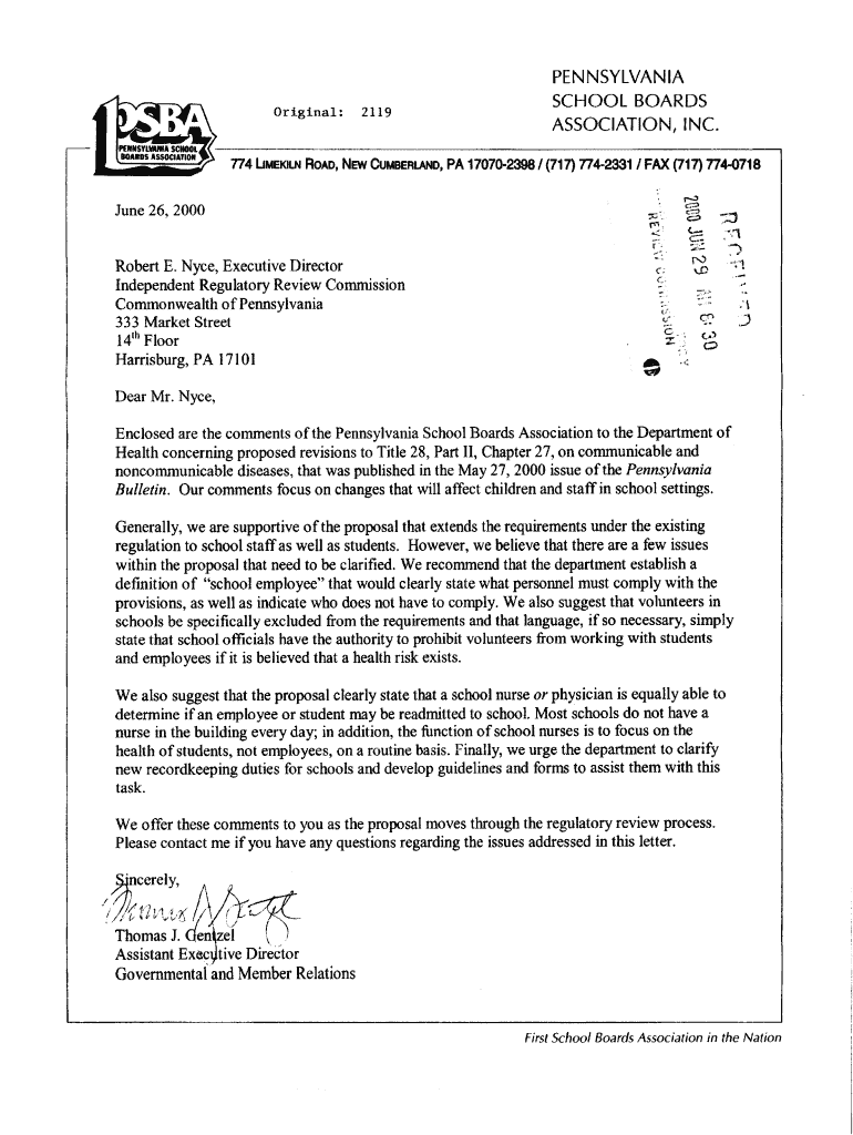 ASSOCIATION, INC.774 LIBERIAN ROAD, NEW CUMBERLAND, PA 170702398 / (717) 7742331 / FAX (717) 7740718June 26, 2000