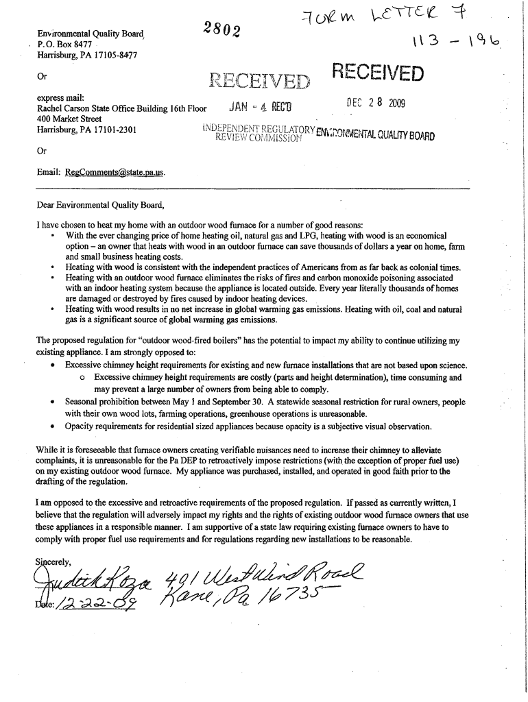 Jute. Environmental Quality Board P.O. Box 8477 Harrisburg, PA 171058477** O U 2 o & I V J Received express mail: Rachel Ca onStateOmceBuildingl6thFloor 400 Market Street Hamburg, PA, 710,2301W TT