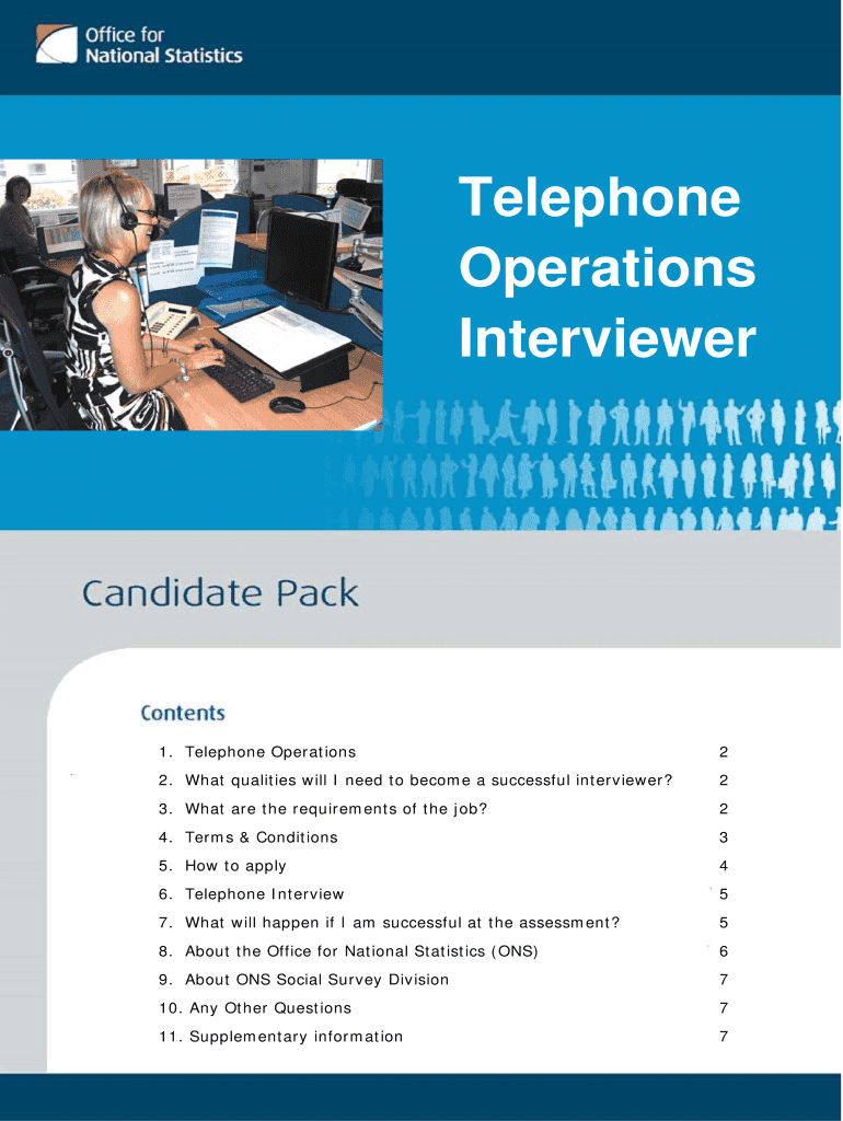 The Social Survey Division of ONS carries out social and economic surveys commissioned telephone Operations Interviewer1. Telephone Operations22. What qualities will I need to become a successful