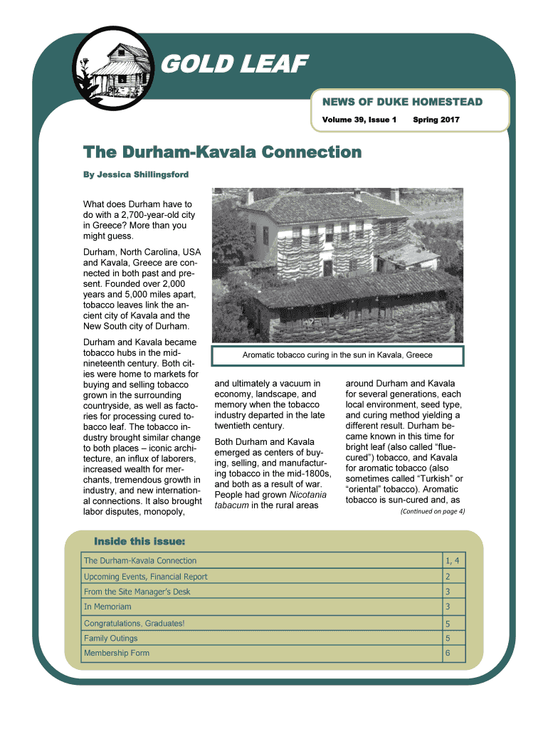Volume 39, Issue 1Spring 2017The DurhamKavala Connection