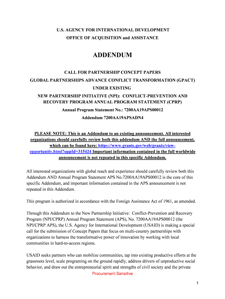 It can be relevant for businesses, non-profit organizations, government agencies, or individuals seeking to collaborate, receive funding, or engage in joint initiatives with the New Partnerships Initiative US Agency.