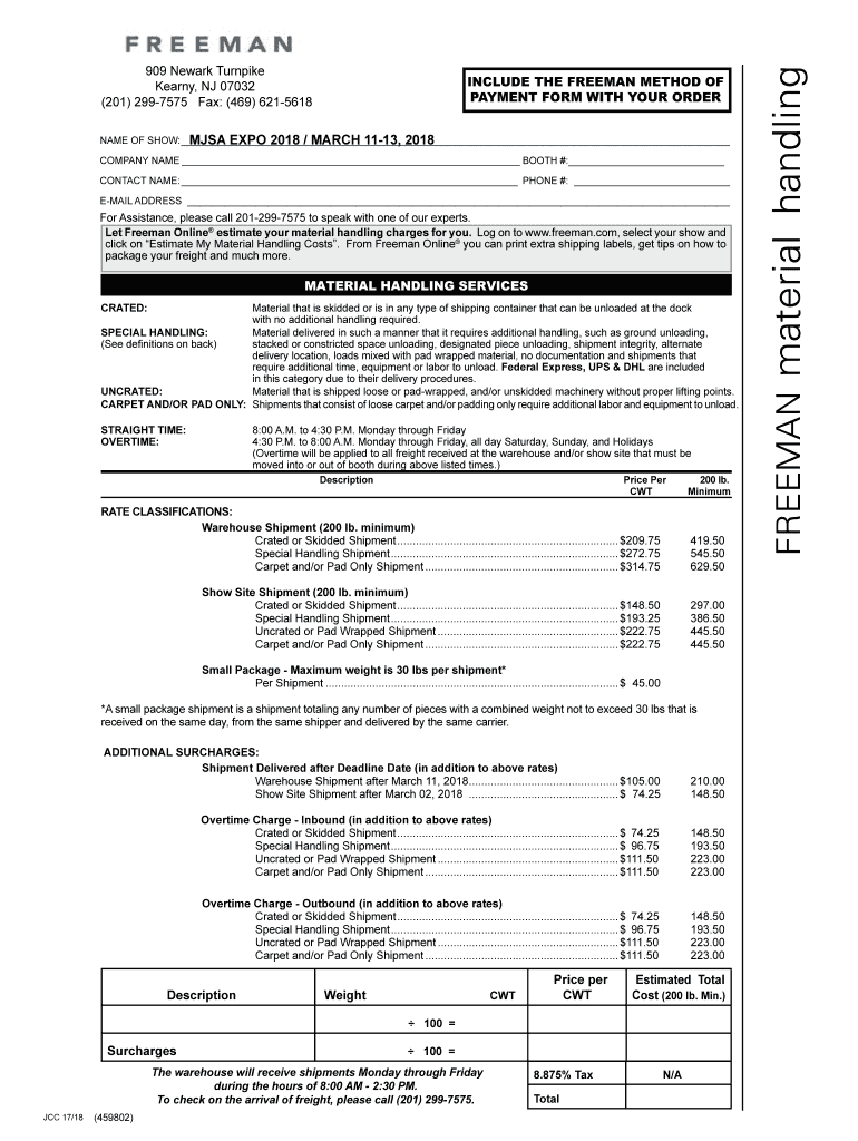 INCLUDE THE FREEMAN METHOD OF PAYMENT FORM WITH YOUR OVERCAME OF SHOW: MESA EXPO 2018 / MARCH 1113, 2018 COMPANY NAME BOOTH #: CONTACT NAME: PHONE #: EMAIL ADDRESS For Assistance, please call 2012997575