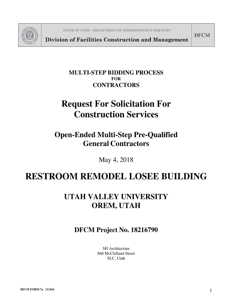 STATE OF UTAH DEPARTMENT OF ADMINISTRATIVE SERVICESDivision of Facilities Construction and ManagementDFCMMULTISTEP BIDDING PROCESS FORCONTRACTORSRequest For Solicitation For Construction Services