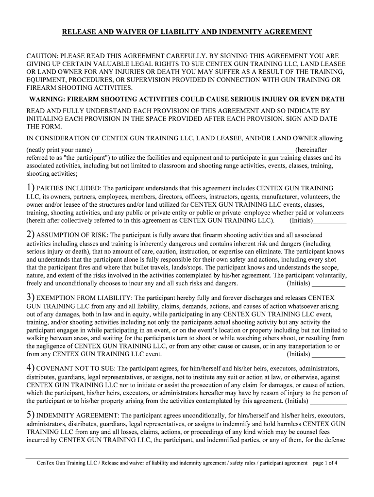 Get the free release and waiver of liability and indemnity agreement warning