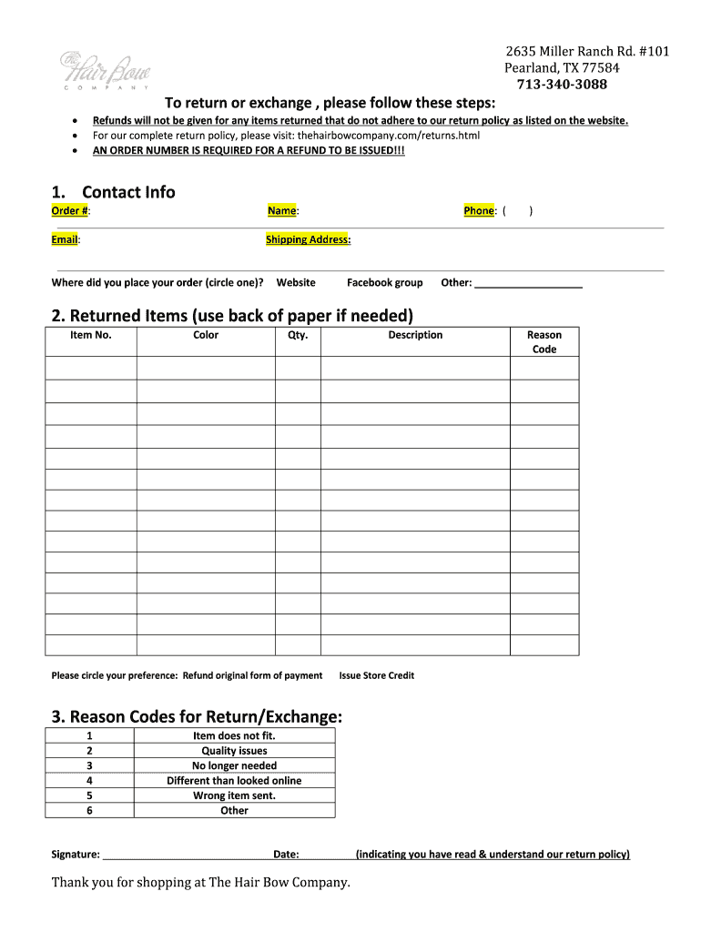 Get the free The Hair Bow Co. Return Form