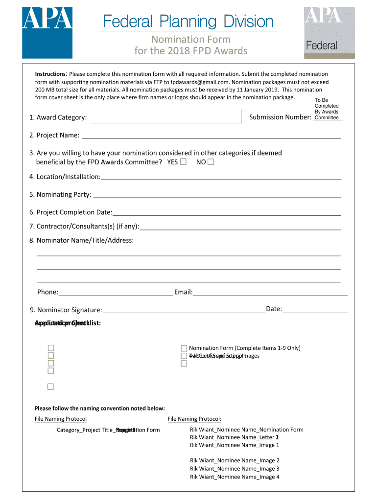 Get the free 2018 Federal Planning Division Awards Nomination Form