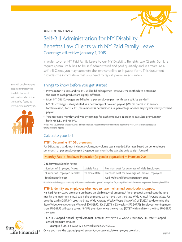 SUN LIFE FINANCIALSelfBill Administration for NY Disability