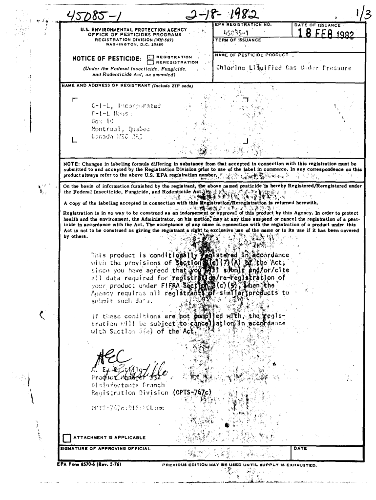 13 EPA REGISTRATION N :. 'U.S. ENVIRONMENTAL PROTECTION AGENCY5c 'l51OFFICE OF PESTICIDES PROGRAMS REGISTRATION DIVISION (WH.567)TERM OF ISSUANCEWASHLNGTON, D.C. 204150NOTICE OF PESTICIDE: 0oNAME