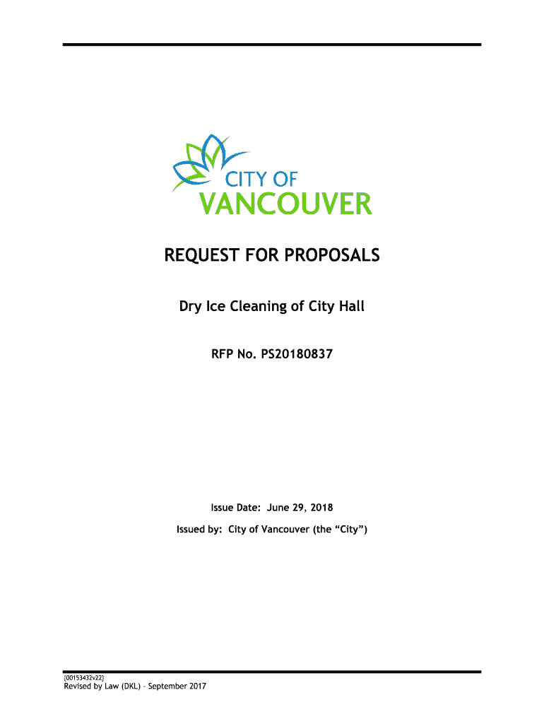 REQUEST FOR PROPOSALS Dry Ice Cleaning of City Hall RFP No. PS20180837Issue Date: June 29, 2018, Issued by: City of Vancouver (the City)00153432v22Revised by Law (DEL) September 2017REQUEST FOR PROPOSALS