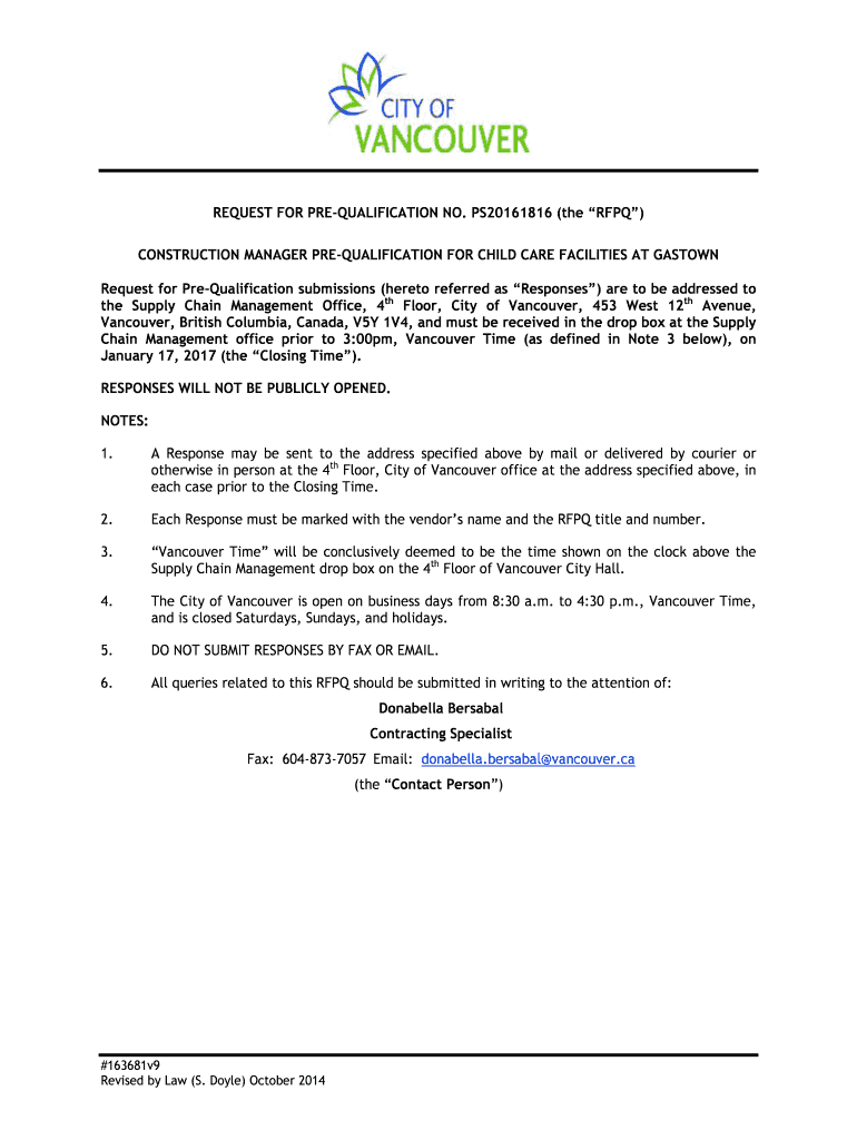 REQUEST FOR PREQUALIFICATION NO. PS20161816 (the RFP)