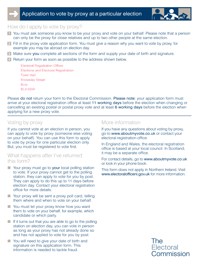Get the free Application to vote by proxy at a particular election Voting by ...