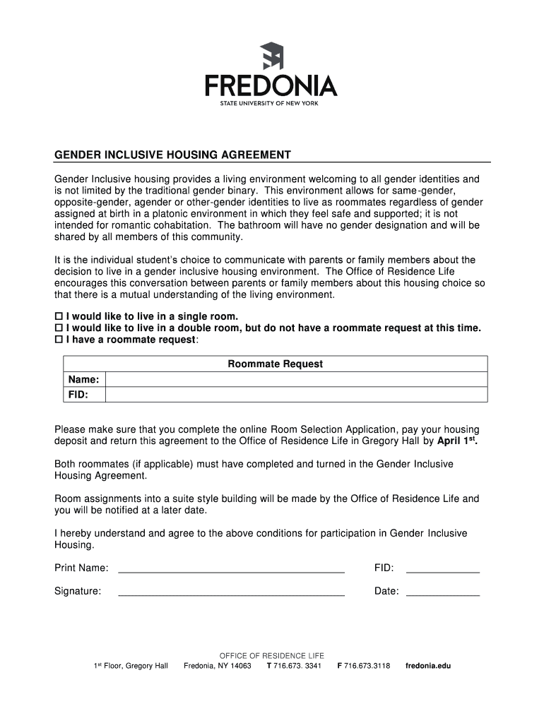 Get the free gender inclusive housing agreement - Fredonia.edu
