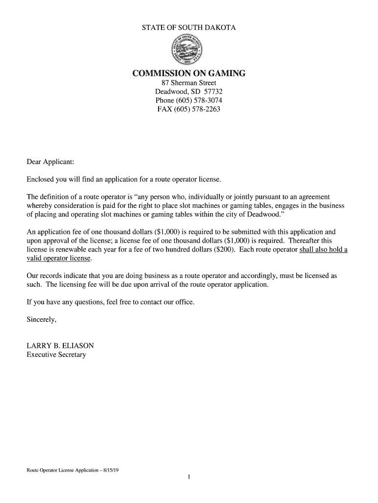 STATE OF SOUTH DAKOTACOMMISSION ON GAMING