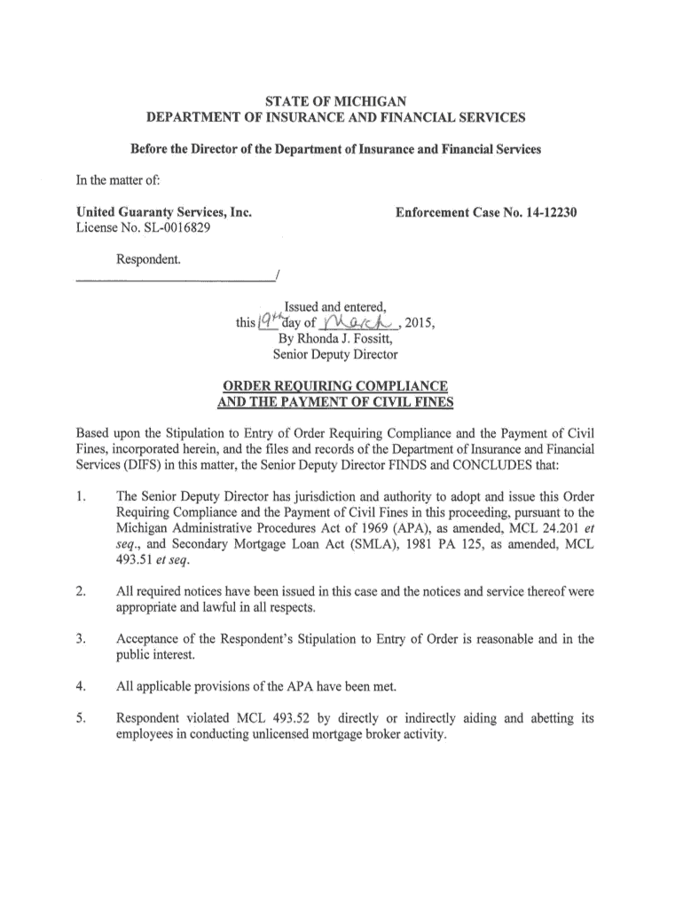 Get the free United Guaranty Services, Inc. 14-12230 - State of Michigan