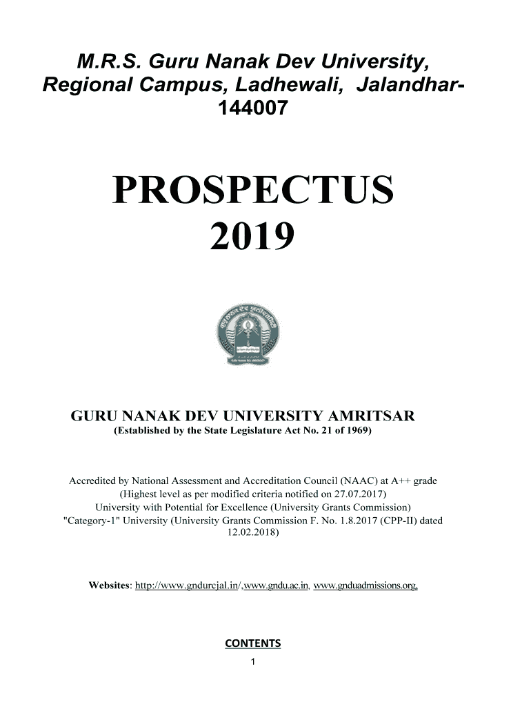 M.R.S. Guru Nanak Dev University, Regional Campus, Ladhewali, Jalandhar144007PROSPECTUS 2019GURU NANAK DEV UNIVERSITY AMRITSAR (Established by the State Legislature Act No. 21 of 1969)Accredited by
