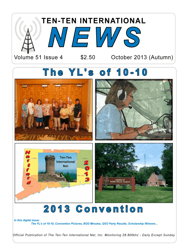 LENTEN INTERNATIONALNEWSVolume 51 Issue 4×2.50October 2013 (Autumn)The YL's of 10102013 Convention In this digital issue: The YL's of 1010, Convention Pictures, BOD Minutes, SO Party Results, Scholarship