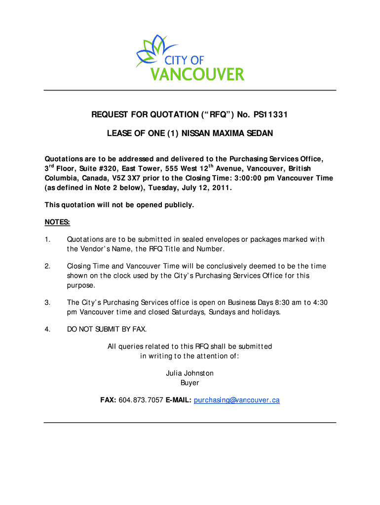 REQUEST FOR QUOTATION (RFQ) No. PS11331