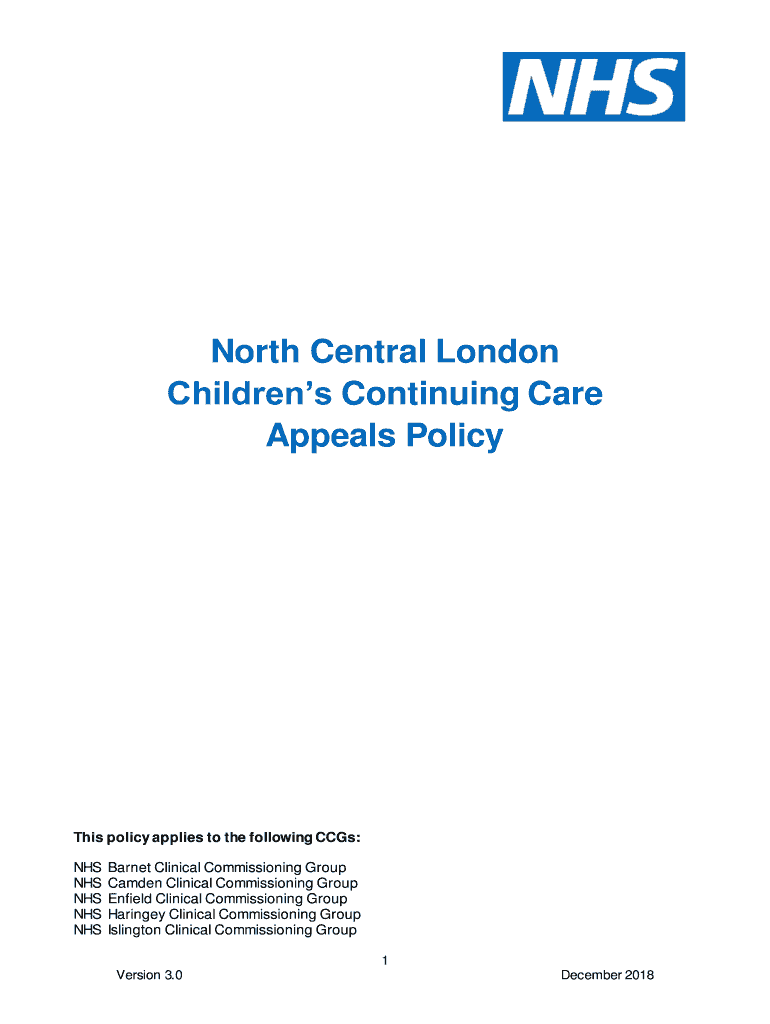 Get the free north central london children's continuing care appeals policy