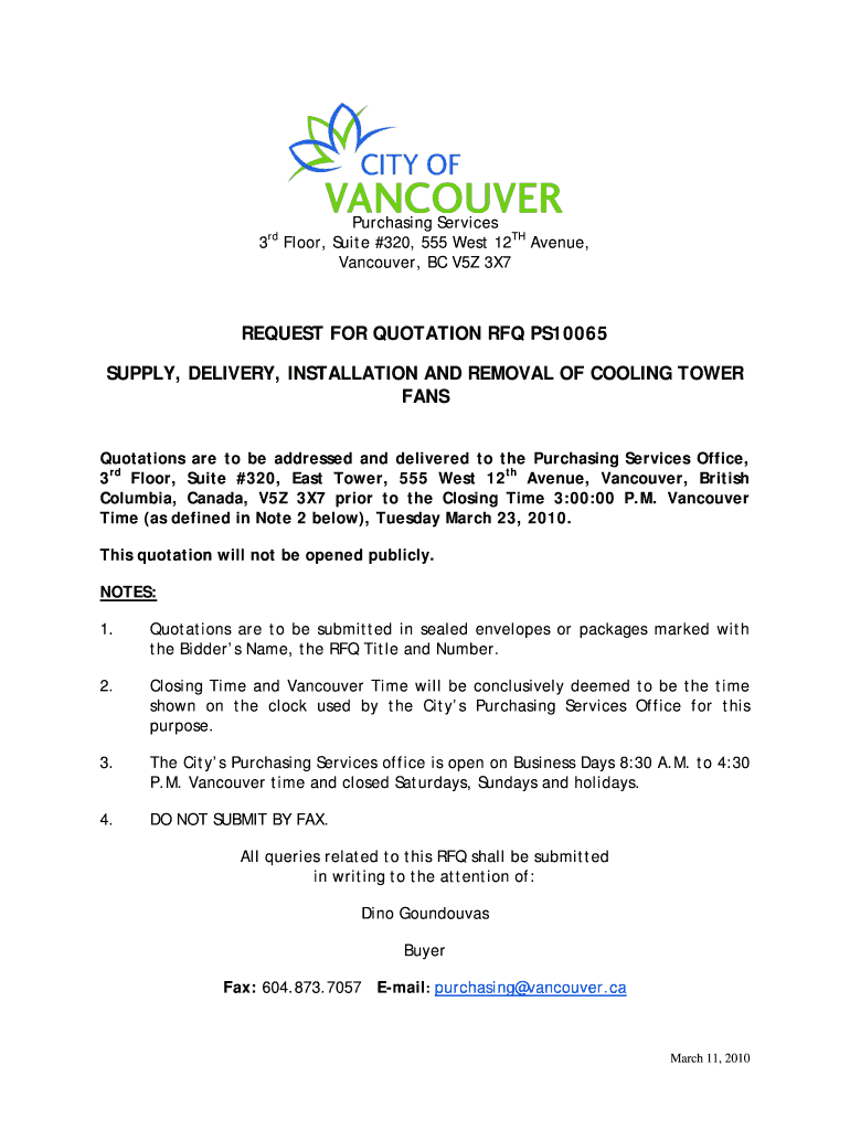 Get the free request for quotation rfq ps10065 supply, delivery, installation ... - bids vancouver