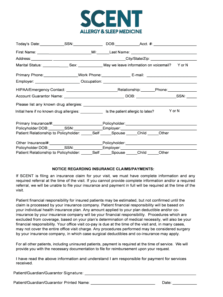 Today's Date: First Name: Address: Marital Status: Primary Phone:SSN:DOB: MI:Acct. #:Last Name: City/State/Zip: Sex:May we leave information on voicemail? Work Phone:Y or Email:Employer: Occupation: