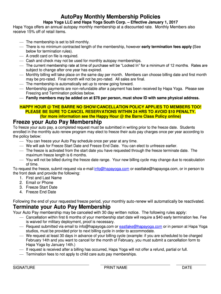 Get the free AutoPay Monthly Membership Policies Freeze ... - Hapa Yoga