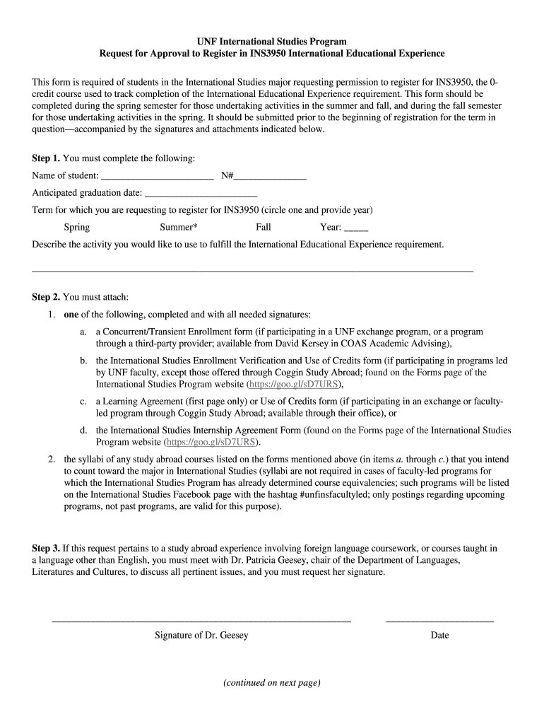 Get the free UNF International Studies Program Request for Approval to ...
