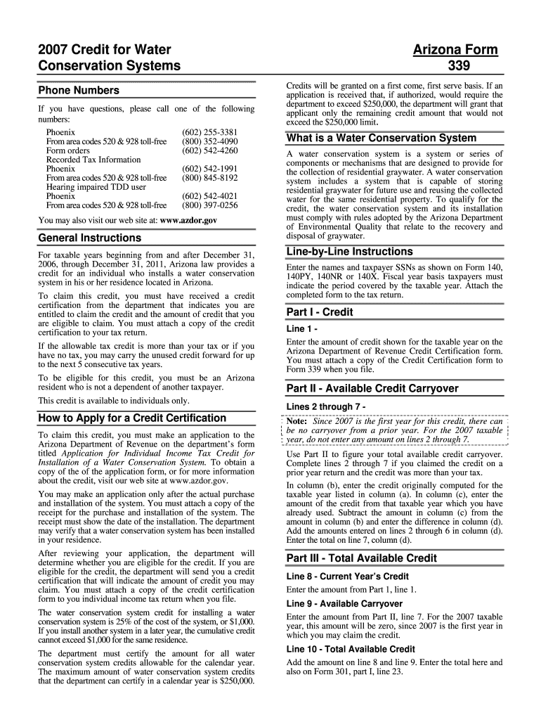 2007 Credit for Water Conservation Systems Phone Numbers If you have questions, please call one of the following numbers: Phoenix (602) 2553381 From area codes 520 & 928 toll-free (800) 3524090 Form