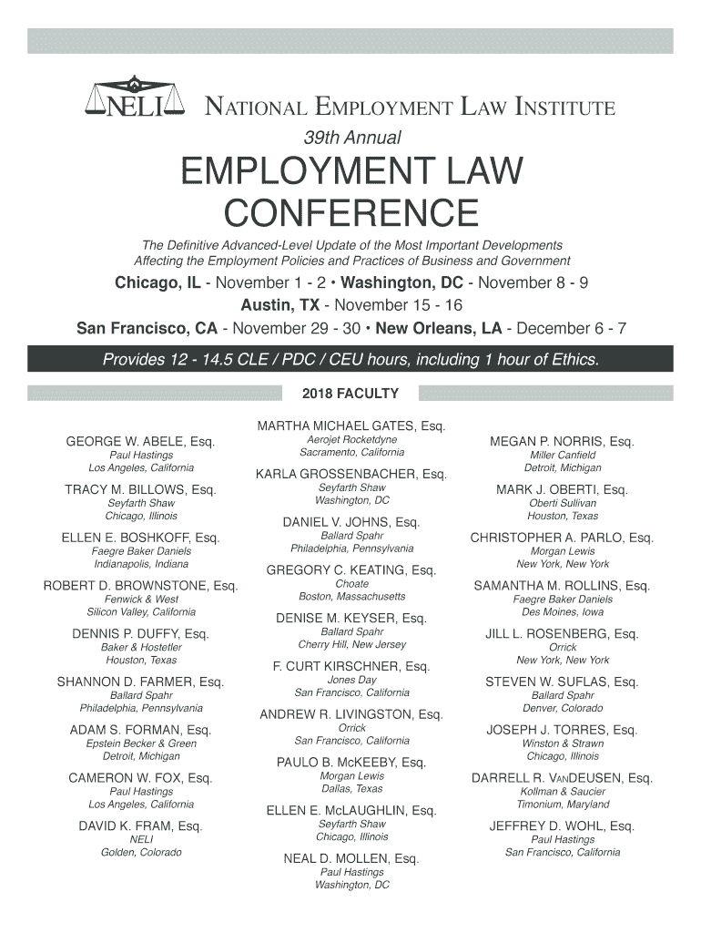 Get the free NELI Programs - Employment Law Conference - The National ...