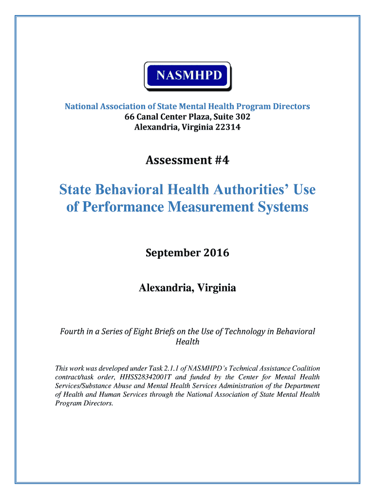 Alexandria, Virginia 22314Assessment #4State Behavioral Health Authorities Use