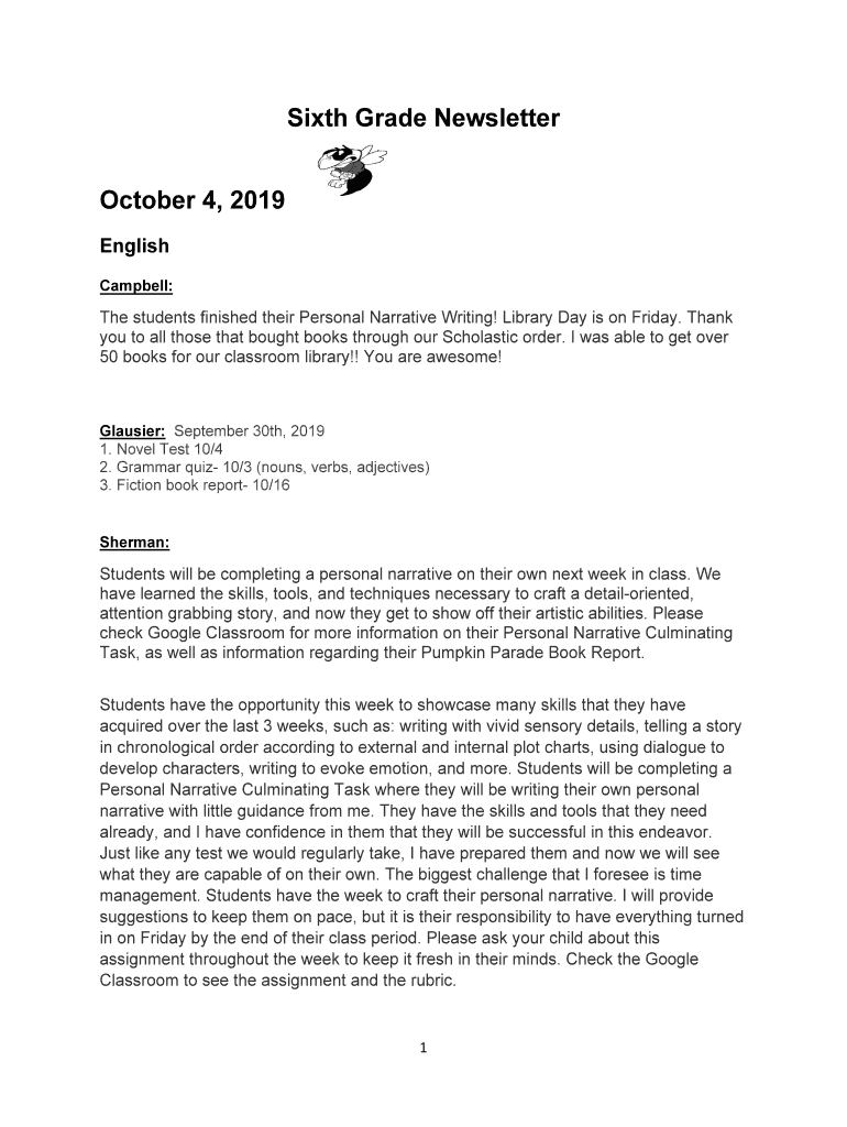 Sixth Grade Newsletter