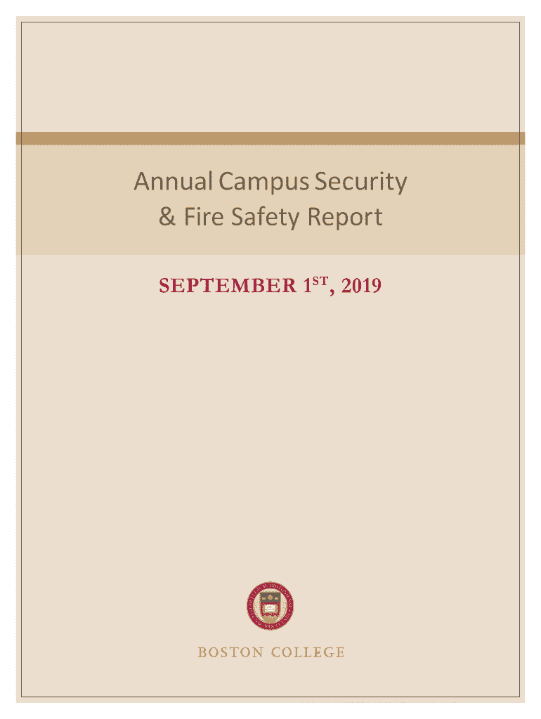 1Annual Campus Security & Fire Safety Report SEPTEMBER 1 ST, 2019BOSTON COLLEGE POLICE DEPARTMENT1The Jeanne Clergy Disclosure of Campus Security Policy and Campus Crime Statistics Act requires the