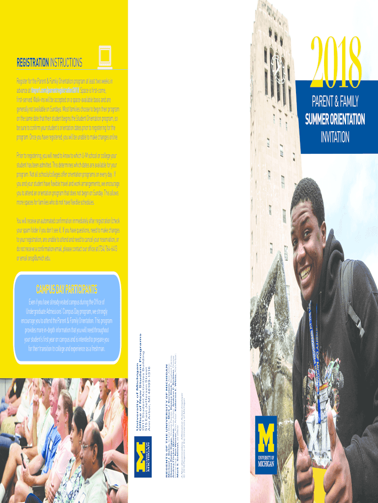 2018REGISTRATION INSTRUCTIONS Register for the Parent & Family Orientation program at least two weeks in advance at tinyurl.com/parentregistration2018. Space is first come, first served. Walking will
