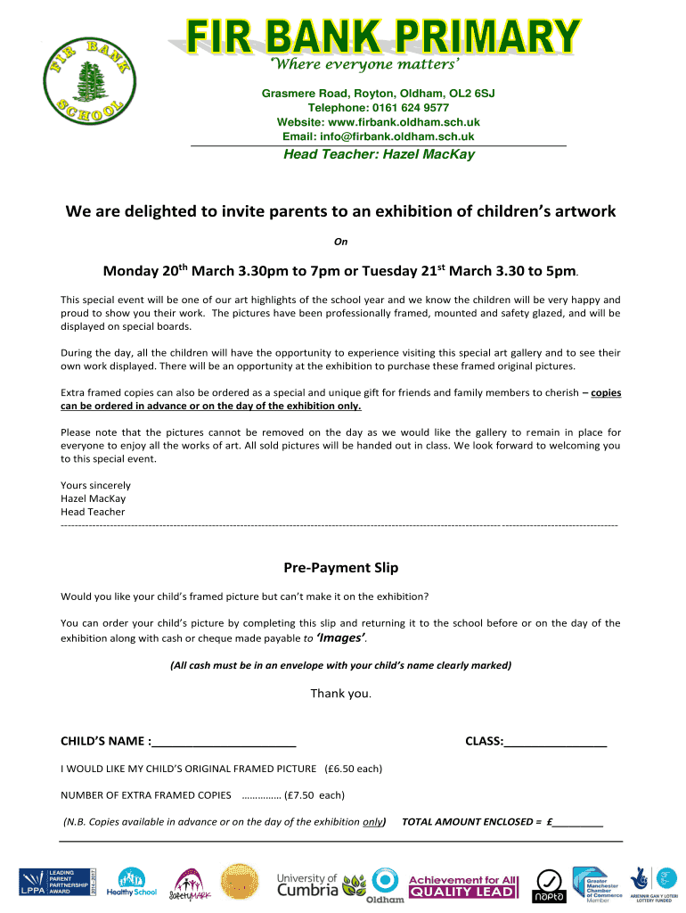 Email: info×fir bank. Old ham.sch.head Teacher: Hazel Mackay are delighted