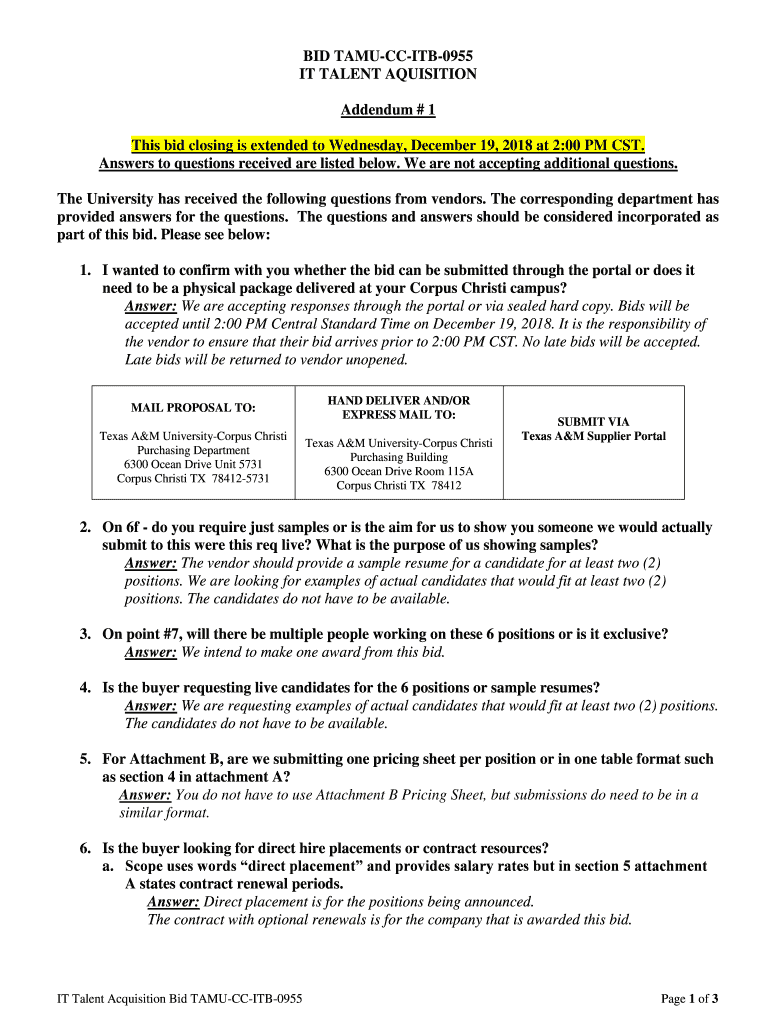 Get the free IT Talent Acquisition Bid Addendum 1 - Administrative ...