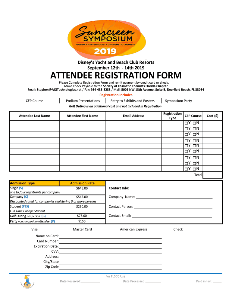 Disney's Yacht and Beach Club Resorts September 12th 14th 2019ATTENDEE REGISTRATION FORM Please Complete Registration Form and remit payment by credit card or check. Make Check Payable to the Society