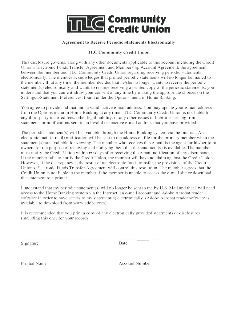 Get the free Agreement to Receive Periodic Statements Electronically. Agreement to Receive Period...