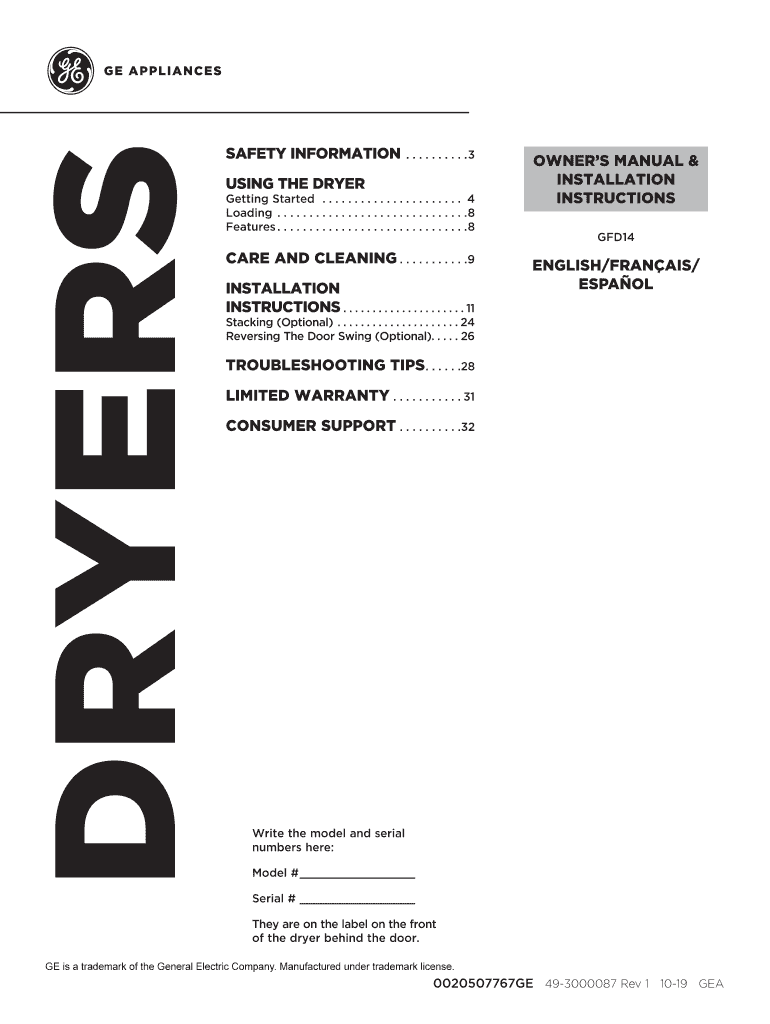 DRYERSSAFETY INFORMATION. . . . . . . . . .3USING THE DRYERGetting Started. . . . . . . . . . . . . . . . . . . . . . 4 Loading. . . . . . . . . . . . . . . . . . . . . . . . . . . . . .8 Features.