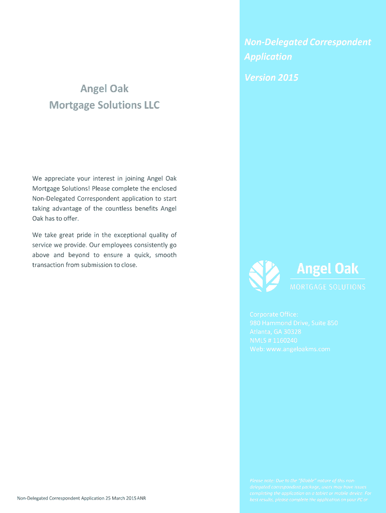 Mortgage Solutions Version 2015We appreciate your interest in joining Angel Oak