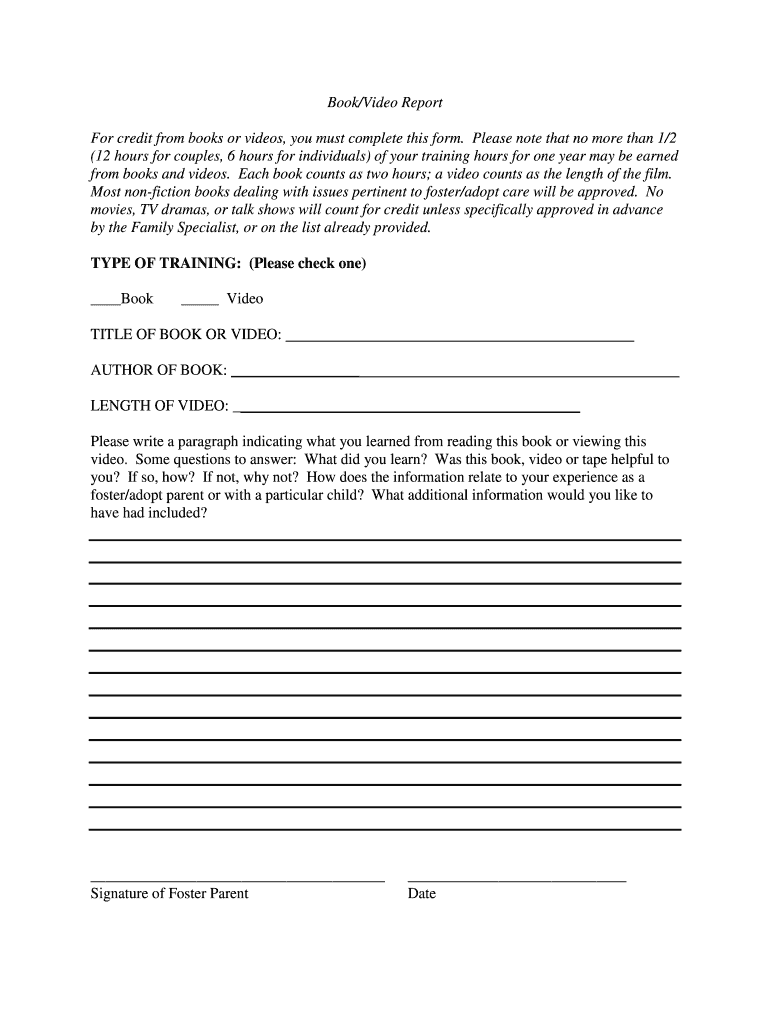 For credit from books or videos, you must complete this form. Please note that no more than 1/2